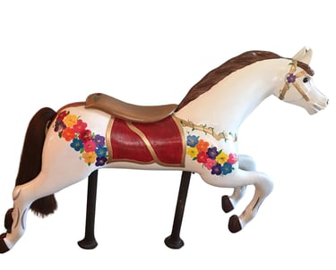I painted him up and even got him a new horse hair tail. Adorbs in their eclectic front room.