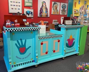 Front Desk and shelving for the fabulous Art and Gift Gallery, Show of Hands right here in Cherry Creek.