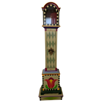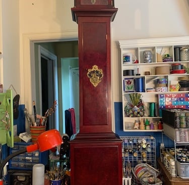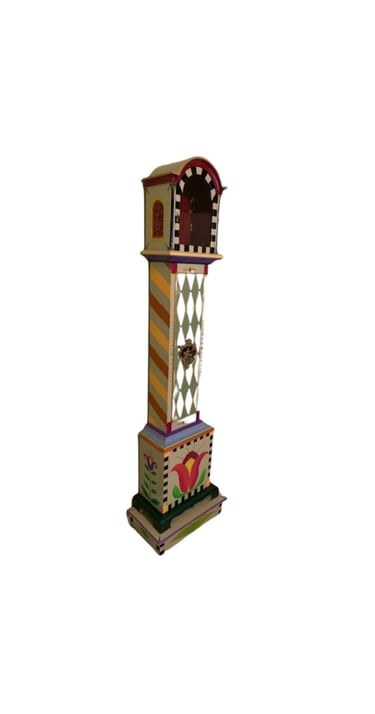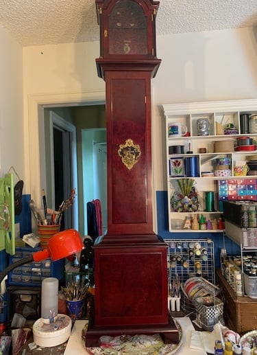 The grandmother's clock, once a cherished piece, exuded charm but ultimately clashed with my client's vision for their space. They sought to infuse their home with vibrancy and playfulness, opting for decor that was colorful and fun rather than the traditional, stuffy aesthetic of the clock. While the clock held sentimental value and a lovely design, it stood in stark contrast to the lively atmosphere my client desired. Instead of a somber relic, they dreamed of a bright and cheerful ambiance, one that reflected their personality and brought joy to their living environment. In pursuing this playful approach, we came up with this fun, fresh design.
